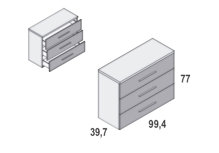 Medidas: 77 x 99,4 x 39,7 cm. (Al x An x Fn)