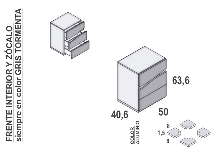 - Medidas Mesilla: 65,1 x 50 x 40,6 cm. (Al x An x Fn)