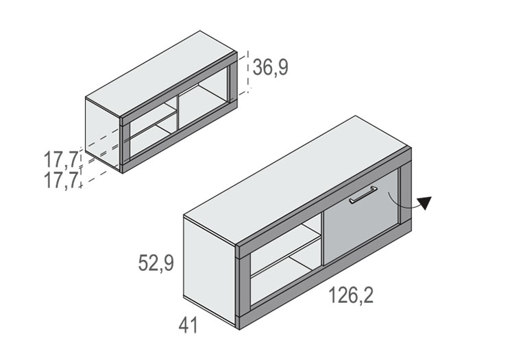 Medidas: 52,9 x 126,2 x 41 cm. (Al x An x Fn)