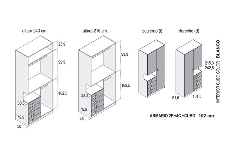 Armario 2 Puertas / 4 Cajones