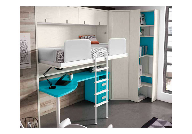 - CAMA ABATIBLE CON LAMAS DE MADERA, SOMIER - BASTIDOR DE ALUMINIO LACADO BLANCO Y PATA SINCRONIZADA CON POSICIONAMIENTO Y BLOQUEO AUTOMÁTICO QUE REDUCE LA SEPARACIÓN ENTRE EL PLAFÓN ABATIBLE Y EL LATERAL.