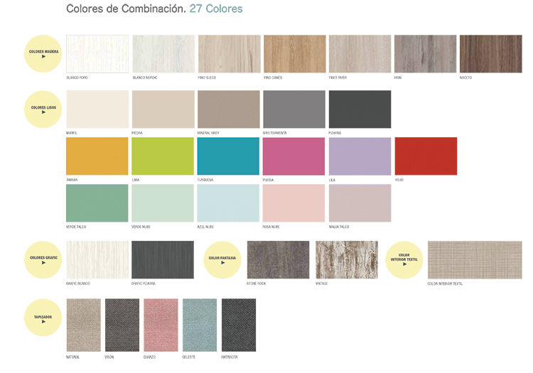 - 8 COLORES MADERA: PINO SUECO, PINO DANÉS, IRON, TIBET RIVER, NOCETO, VINTAGE, BLANCO NORDIC Y BLANCO PORO.